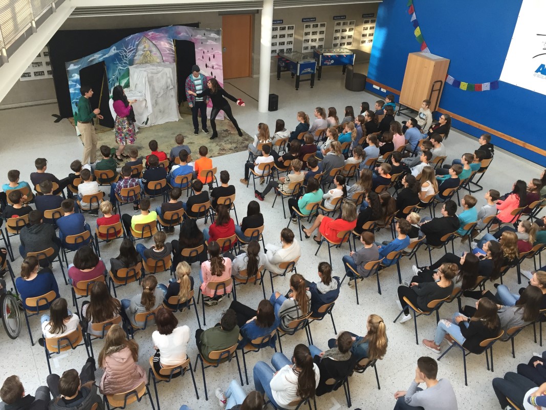 Das White Horse Theatre begeistert seit Jahren die Schülerinnen und Schüler der Abt-Bessel-Realschule. Es bietet Stücke für Unter-, Mittel- und Oberstufe an, die oft einen gesellschaftskritischen Hintergrund bearbeiten. Dieses Jahr nahmen alle 7. und 8. Klassen teil.