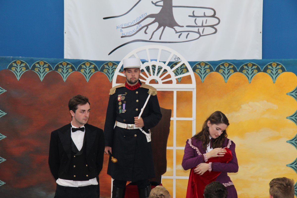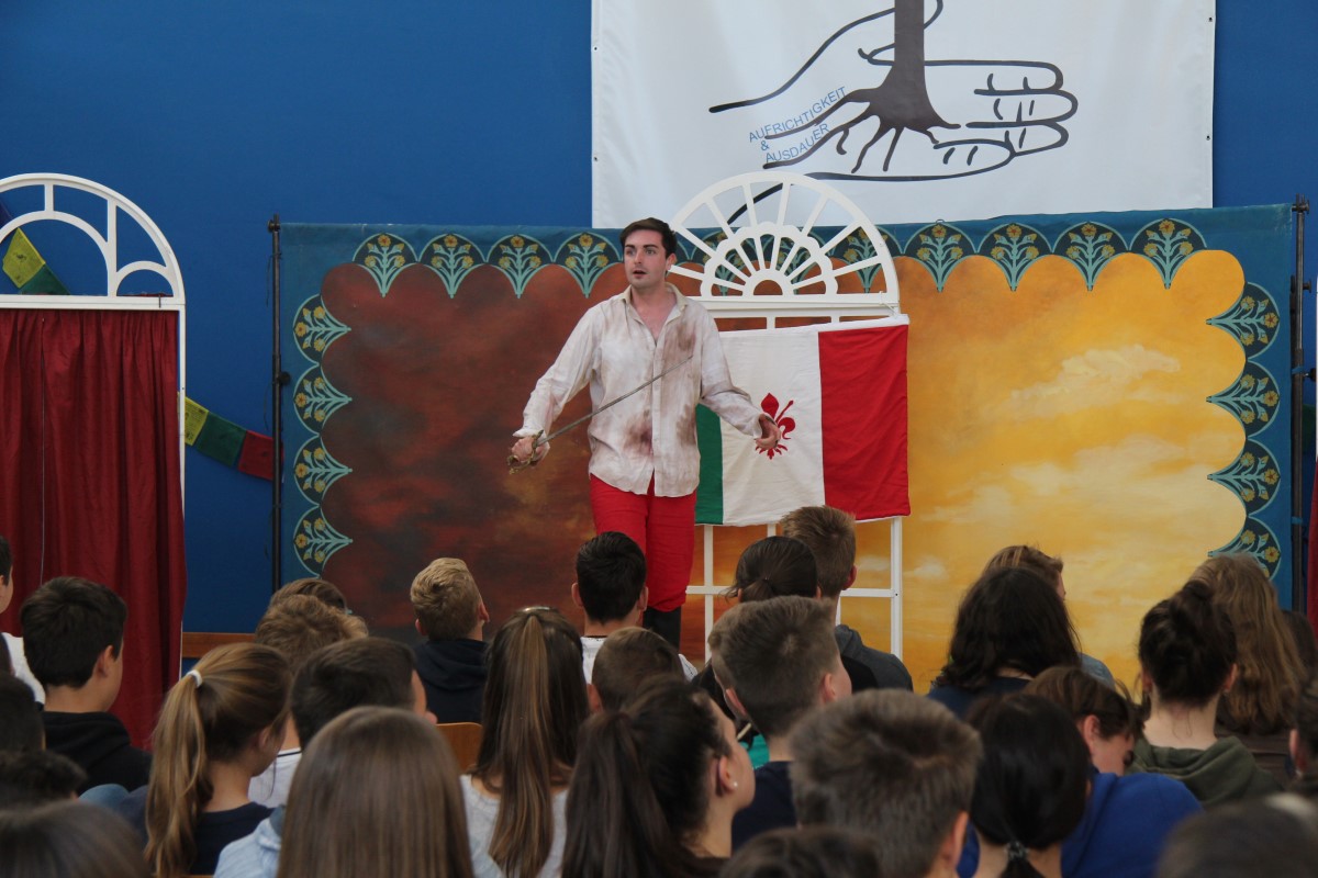 Rund 180 Schülerinnen und Schüler der 8. und 9. Klassen nahmen teil und sahen eine humorvolle Interpretation von Shakespeares „All’s well that ends well“.
