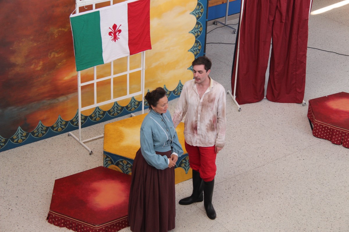 Die vier Schauspieler vom White Horse Theatre schlüpften unter anderem in die Rollen des adeligen Grafen Bertram und der jungen Helene, die am Hofe als Dienerin arbeitet. Helene verliebt sich unsterblich in den Grafen, welcher ihre Liebe auf Grund ihres niederen aber Standes nicht erwidert. Im Laufe der Handlung schafft es Helene jedoch mit unermüdlichem Eifer, viel Cleverness und auch etwas Hinterlistigkeit, Bertram an sich zu binden und ihn gegen seinen Willen zu heiraten. Der Titel des Anfang des 17. Jahrhunderts verfassten Werkes „All’s wellt hat ends well“ (Ende gut, alles gut) ist damit durchaus ironisch zu verstehen, denn von einem Happy End kann für den Grafen Bertram nicht die Rede sein. Auch deshalb wird das Stück heute der Sondergattung dark comedy (dunkle Komödie) zugeordnet.