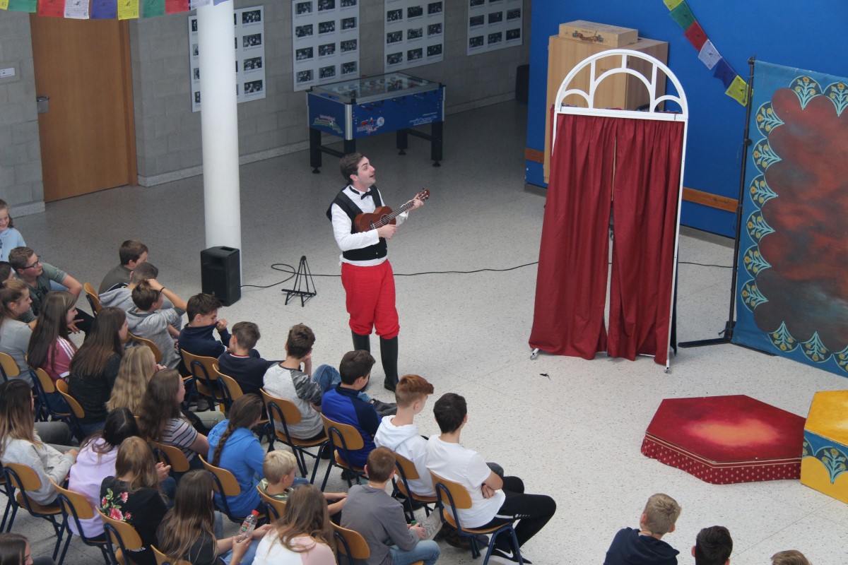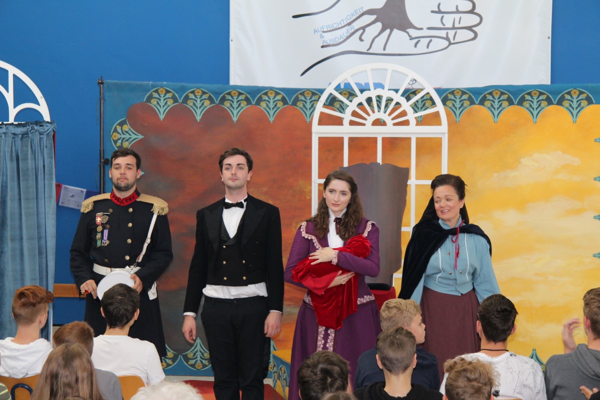 05.10.2018 | Die britischen Schauspieler vom White Horse Theatre waren wieder einmal zu Gast an der Abt-Bessel-Realschule.