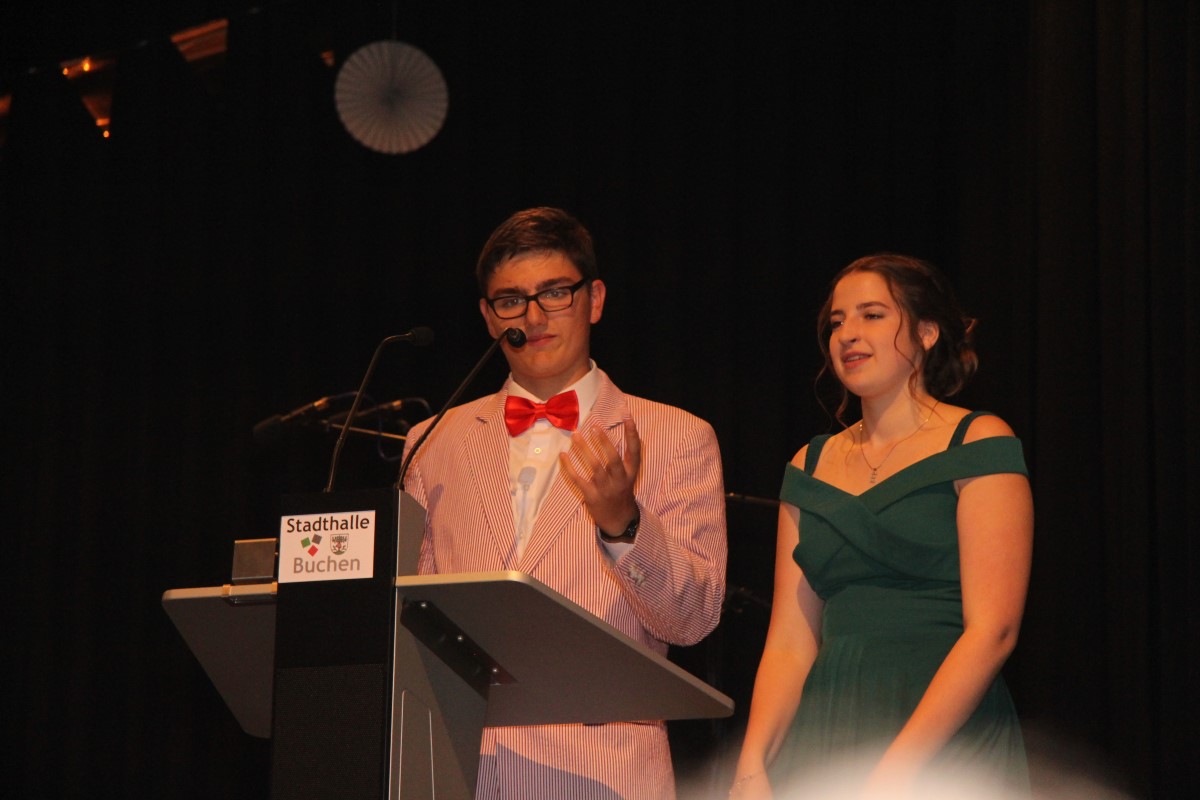 Für einen schwungvollen Beginn des Abends sorgte die schuleigene Bigband unter der Leitung von Christoph Blaumeiser mit dem Stück „Don’t gimme that“. Im Anschluss daran begrüßten die noch amtierenden Schülersprecher Emma Stephan und Samuel Halder alle anwesenden Gäste. Die beiden Zehntklässler, die später ebenfalls ihr Zeugnis erhalten sollten, gratulierten ihren Mitschülern und dankten ihren Eltern und Lehrern, die sie „in tiefster Pubertät ausgehalten haben“. In die freudigen Gefühle mischte sich für die beiden aber auch ein wenig Wehmut: „Es wird sehr komisch ab September, wenn wir dann nicht mehr zusammen sind.“ Für die Schulleitung begrüßte Konrektor Magnus Brünner alle Schülerinnen und Schüler, Eltern und Ehrengäste des Abends. Ein besonderer Dank ging hierbei an den Schulträger, die Stadt Buchen, sowie an die Bildungspartner Sparkasse Neckartal-Odenwald und Volksbank Franken für ihre Unterstützung und Engagement für die Abt-Bessel-Realschule.