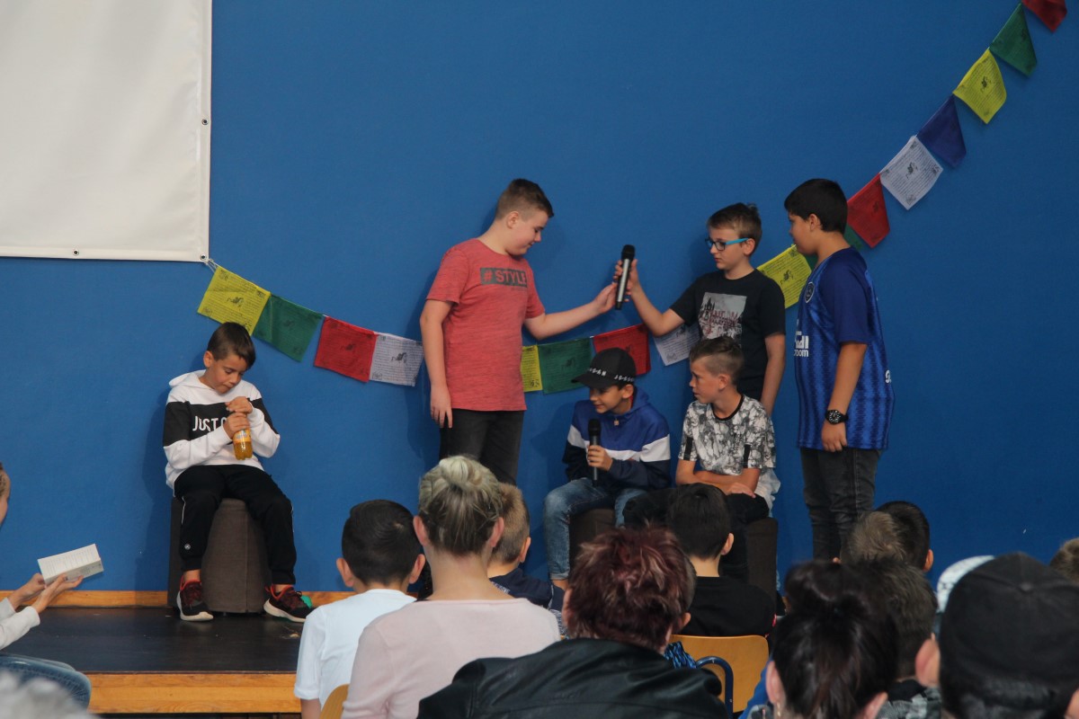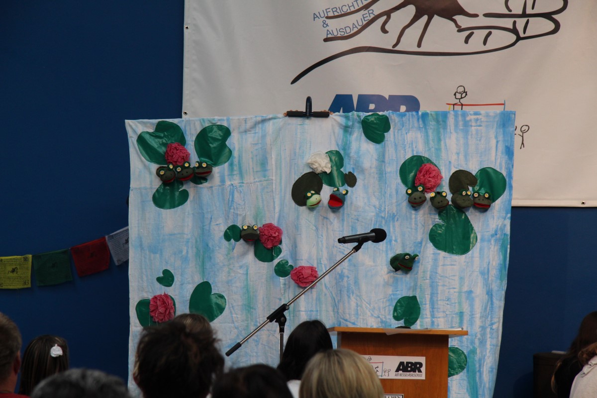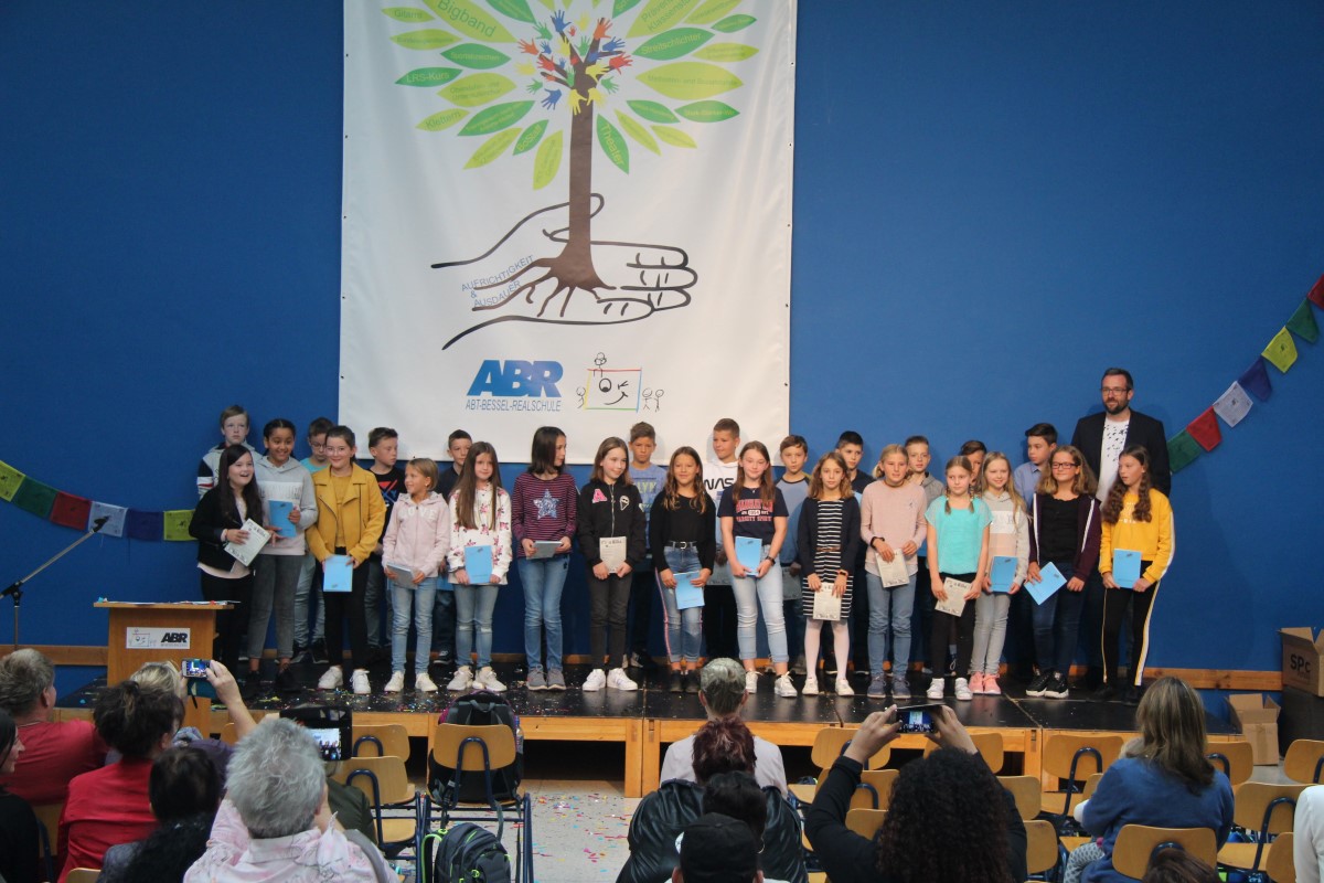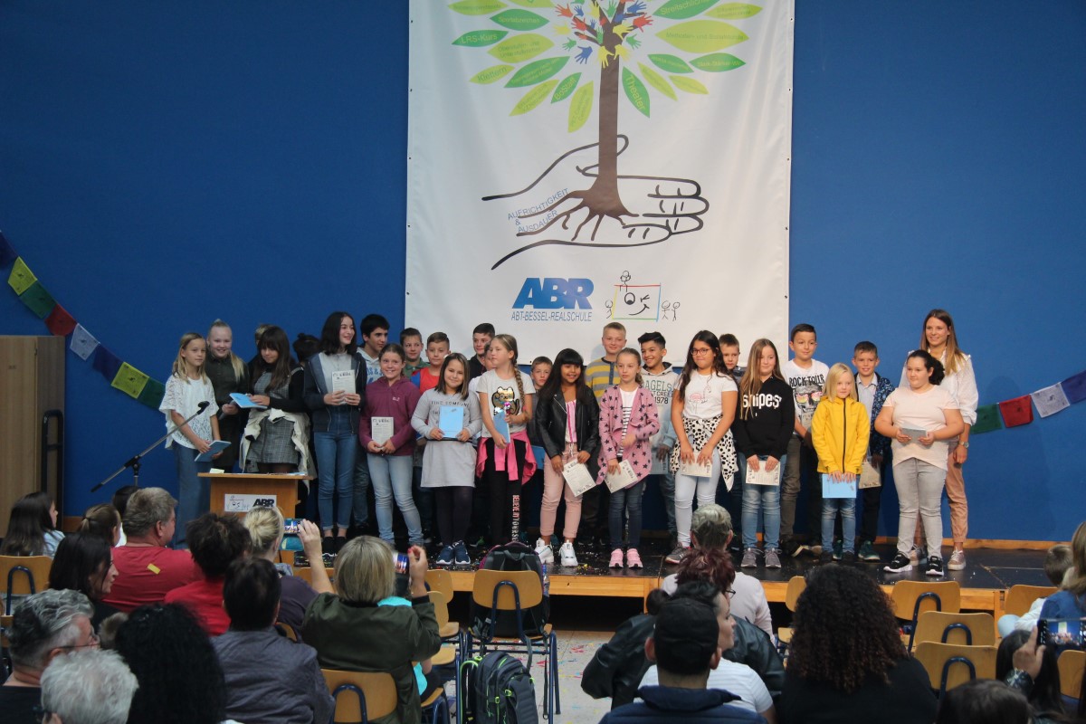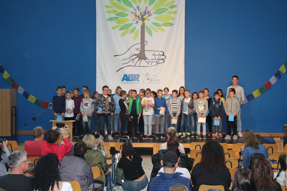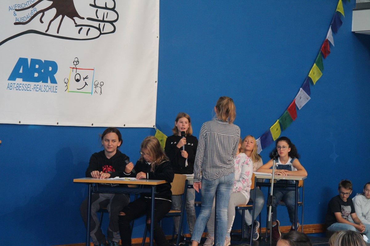 Auch die sechsten Klassen hießen ihre neuen Mitschüler und Mitschülerinnen durch musikalische Beiträge herzlich willkommen und skizzierten das Schulleben in Form eines Sketchs auf humorvolle Weise, um den Fünftklässlern ein wenig die Aufregung zu nehmen. Anschließend fand die Einteilung in die drei fünften Klassen und die Übergabe der "Logbücher" durch die Klassenlehrer Frau Moser (5a), Felix Hartwig (5b) und Christian Eger (5c) statt. Während die Kinder sich innerhalb ihrer neuen Klasse näher kennenlernen konnten, lud der Förderverein "Impulse" alle Eltern, Freunde und Bekannte zum gemeinsamen Austausch bei Kaffee und Kuchen ein.