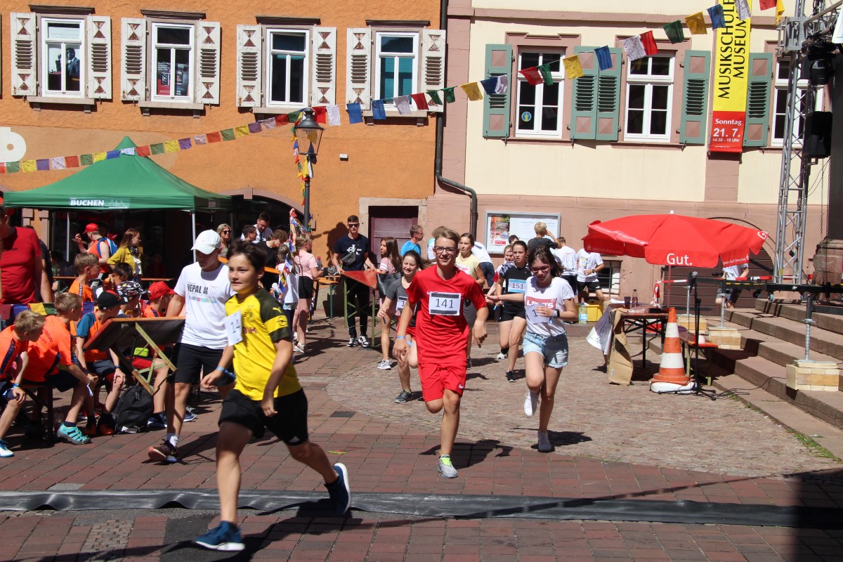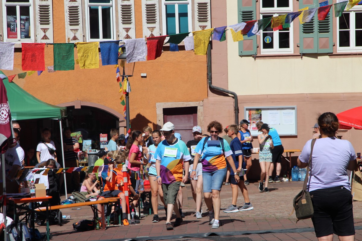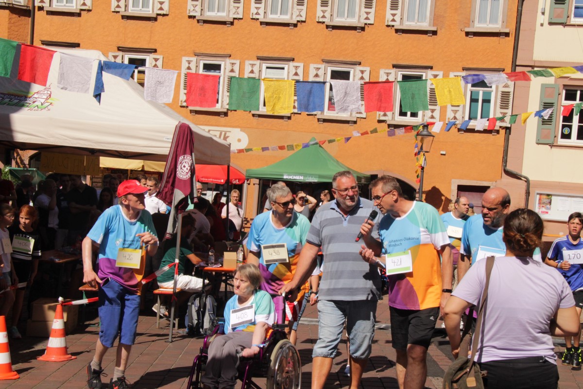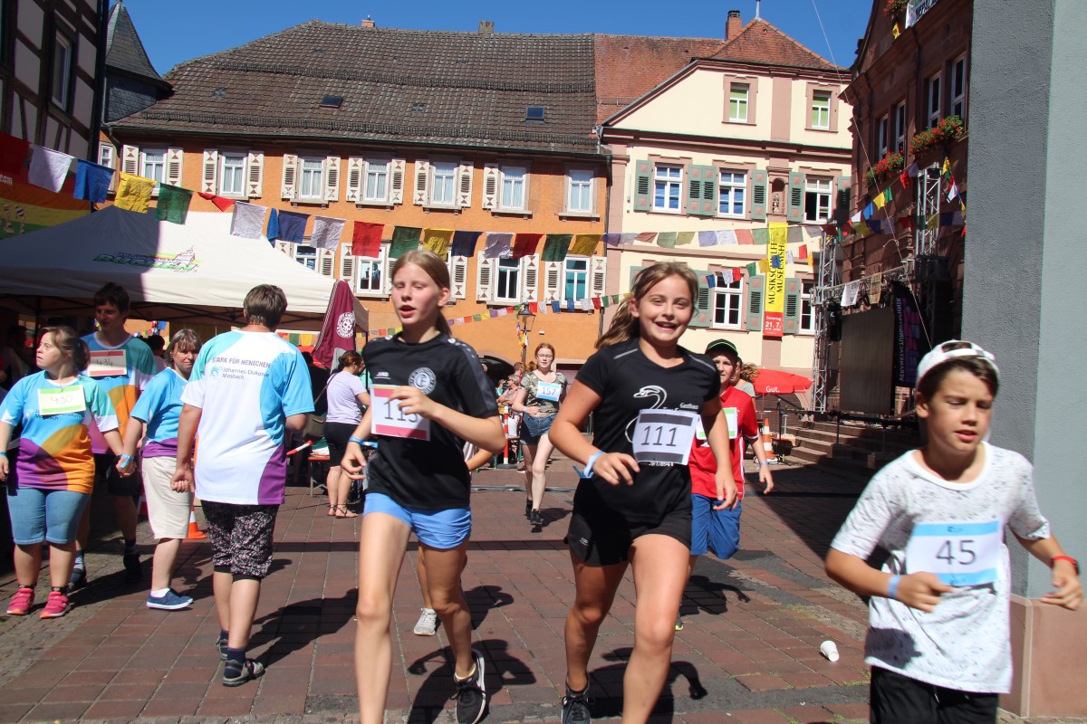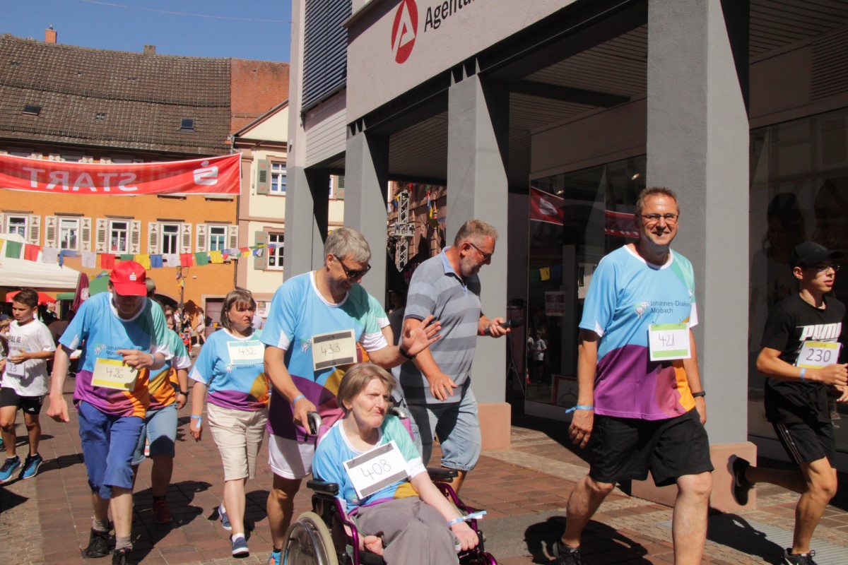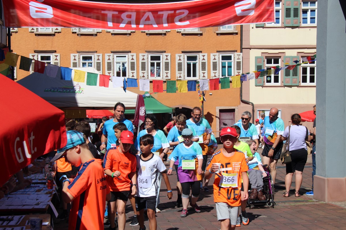 Lehrer Daniel Schäfer erklärte, dass sie natürlich jeden Euro gut gebrauchen können, die eigentliche Sensation sei jedoch, zu sehen, wie sich an diesem Tag vier Generationen gemeinsam für andere Menschen in einem der ärmsten Länder der Welt engagieren. So waren aus einer Familie die Enkel mit ihrem Kindergarten und ihrer Schule, die Mütter mit Kinderwagen und der Großvater mit Rollator mit seiner Tagespflegegruppe gelaufen. Das waren Bilder, die unter die Haut gingen. Das gemeinsame Laufen, egal wie jung oder alt, egal ob fit oder nicht und das Gefühl in einer kleinen Gruppe, die Welt ein Stückchen besser zu machen, beflügelten an diesem Tage viele. So liefen am Vormittag Schüler der ABR, der Hettinger Grundschule und der Wimpina-Grundschule und mischten sich auf der Strecke unter 51 Kinder des Kindergartens "Regenbogen" und die Läufer der Diakonie Buchen und Wertheim, die mit Rollstuhl und sich an den Händen haltend unermüdlich Runden drehten. Später liefen noch Kinder des Kindergartens St. Rochus, Schüler der Zentralgewerbeschule und der Helene-Weber-Schule, die Initiative "Herz statt Hetze", sowie Gruppen von verschiedenen Unternehmen, Vereinen und auch Zuschauer, die sich spontan mitreißen liesen und sich noch schnell gegenseitig sponsorten.