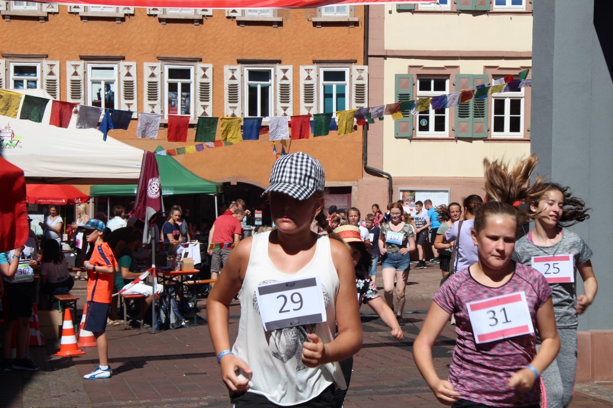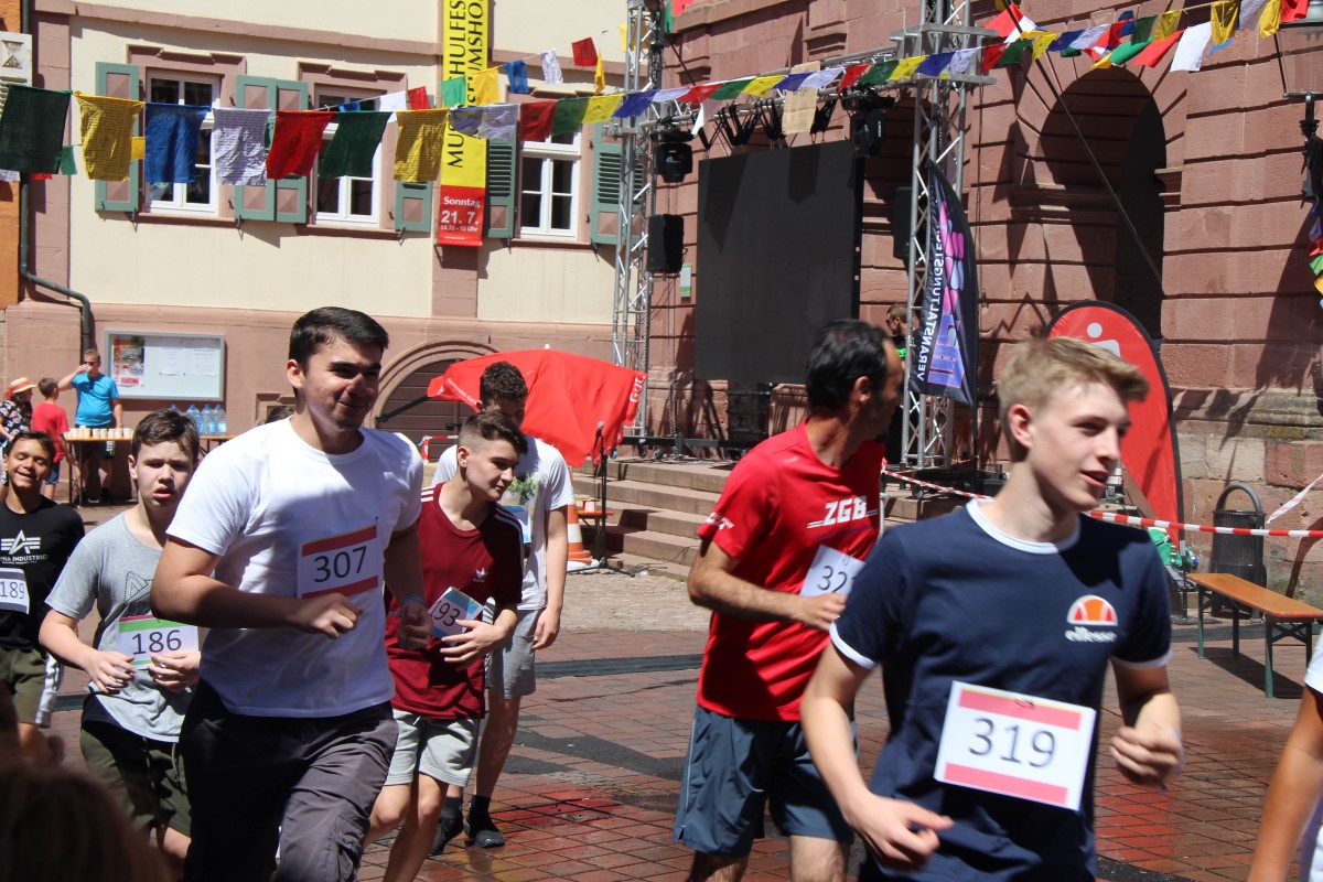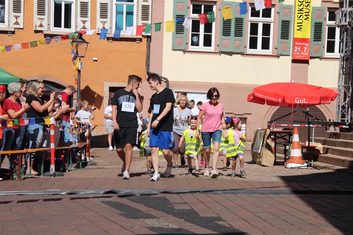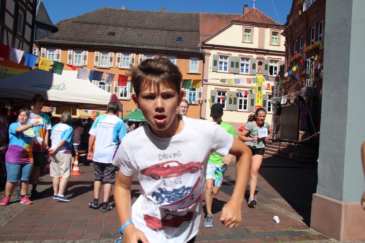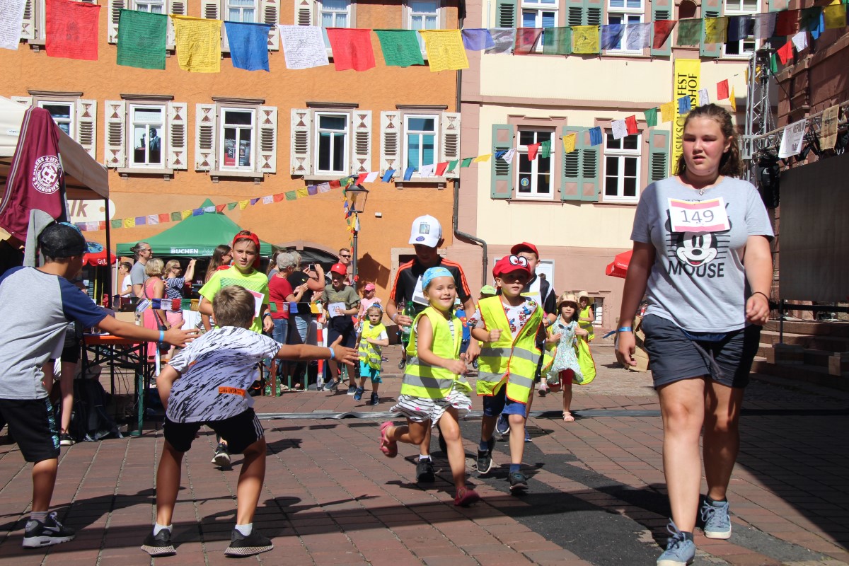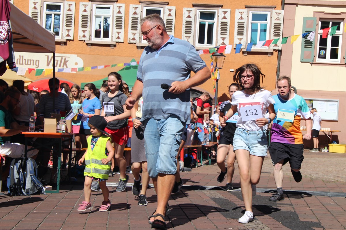 Lehrer Daniel Schäfer erklärte, dass sie natürlich jeden Euro gut gebrauchen können, die eigentliche Sensation sei jedoch, zu sehen, wie sich an diesem Tag vier Generationen gemeinsam für andere Menschen in einem der ärmsten Länder der Welt engagieren. So waren aus einer Familie die Enkel mit ihrem Kindergarten und ihrer Schule, die Mütter mit Kinderwagen und der Großvater mit Rollator mit seiner Tagespflegegruppe gelaufen. Das waren Bilder, die unter die Haut gingen. Das gemeinsame Laufen, egal wie jung oder alt, egal ob fit oder nicht und das Gefühl in einer kleinen Gruppe, die Welt ein Stückchen besser zu machen, beflügelten an diesem Tage viele. So liefen am Vormittag Schüler der ABR, der Hettinger Grundschule und der Wimpina-Grundschule und mischten sich auf der Strecke unter 51 Kinder des Kindergartens "Regenbogen" und die Läufer der Diakonie Buchen und Wertheim, die mit Rollstuhl und sich an den Händen haltend unermüdlich Runden drehten. Später liefen noch Kinder des Kindergartens St. Rochus, Schüler der Zentralgewerbeschule und der Helene-Weber-Schule, die Initiative "Herz statt Hetze", sowie Gruppen von verschiedenen Unternehmen, Vereinen und auch Zuschauer, die sich spontan mitreißen liesen und sich noch schnell gegenseitig sponsorten.