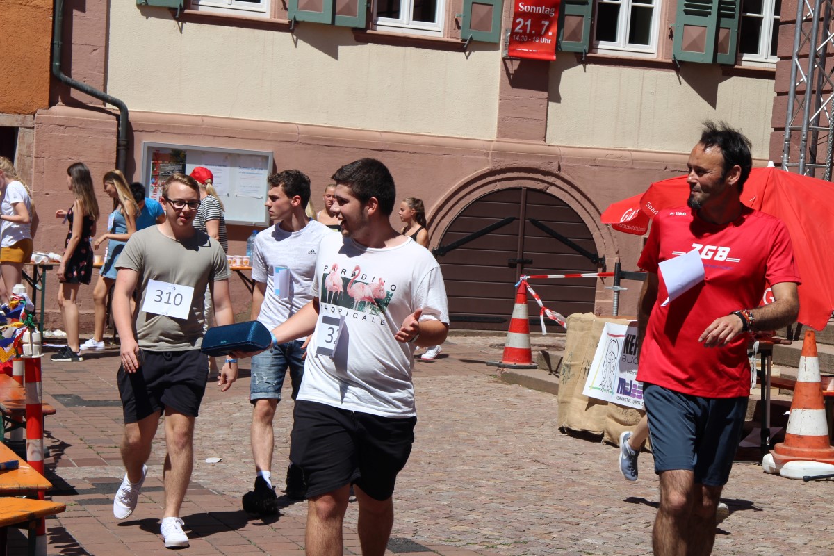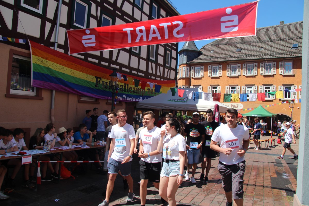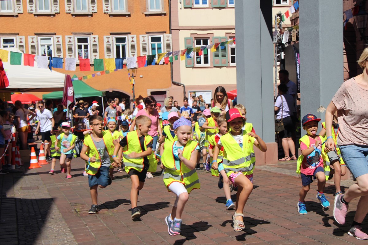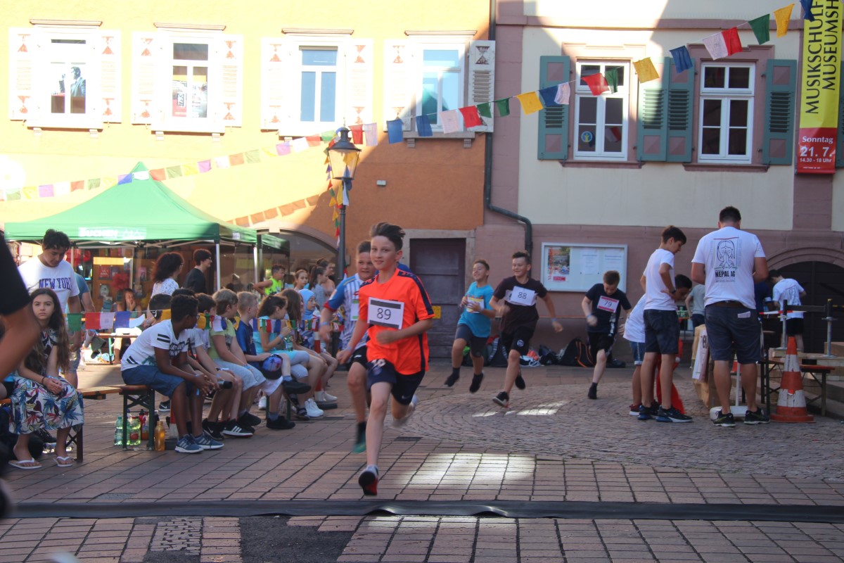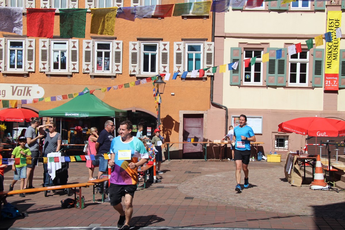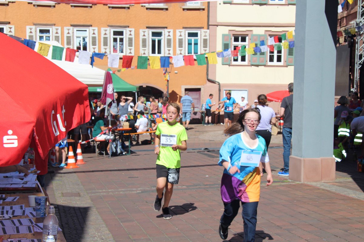 Lehrer Daniel Schäfer erklärte, dass sie natürlich jeden Euro gut gebrauchen können, die eigentliche Sensation sei jedoch, zu sehen, wie sich an diesem Tag vier Generationen gemeinsam für andere Menschen in einem der ärmsten Länder der Welt engagieren. So waren aus einer Familie die Enkel mit ihrem Kindergarten und ihrer Schule, die Mütter mit Kinderwagen und der Großvater mit Rollator mit seiner Tagespflegegruppe gelaufen. Das waren Bilder, die unter die Haut gingen. Das gemeinsame Laufen, egal wie jung oder alt, egal ob fit oder nicht und das Gefühl in einer kleinen Gruppe, die Welt ein Stückchen besser zu machen, beflügelten an diesem Tage viele. So liefen am Vormittag Schüler der ABR, der Hettinger Grundschule und der Wimpina-Grundschule und mischten sich auf der Strecke unter 51 Kinder des Kindergartens "Regenbogen" und die Läufer der Diakonie Buchen und Wertheim, die mit Rollstuhl und sich an den Händen haltend unermüdlich Runden drehten. Später liefen noch Kinder des Kindergartens St. Rochus, Schüler der Zentralgewerbeschule und der Helene-Weber-Schule, die Initiative "Herz statt Hetze", sowie Gruppen von verschiedenen Unternehmen, Vereinen und auch Zuschauer, die sich spontan mitreißen liesen und sich noch schnell gegenseitig sponsorten.