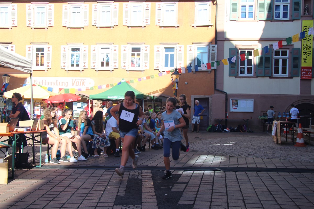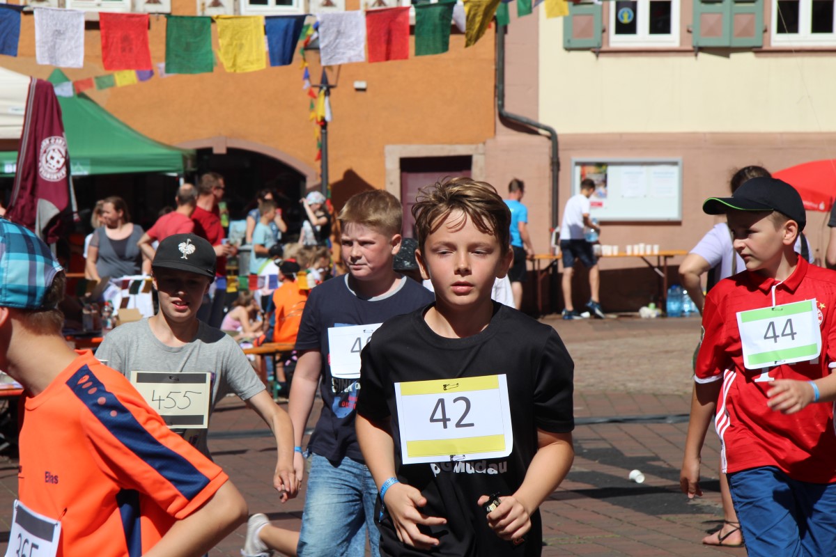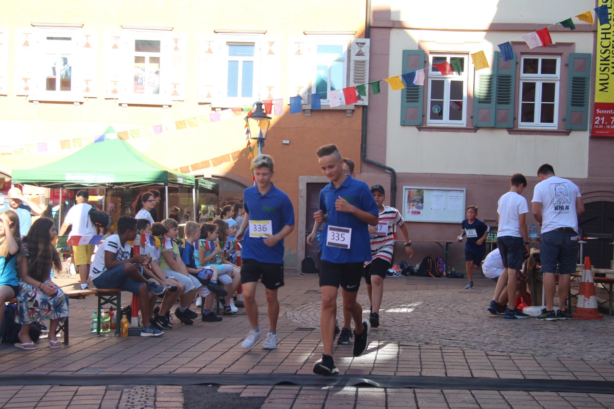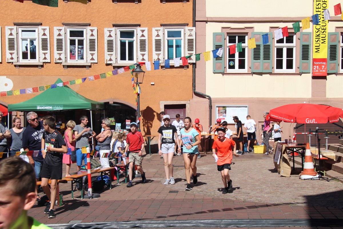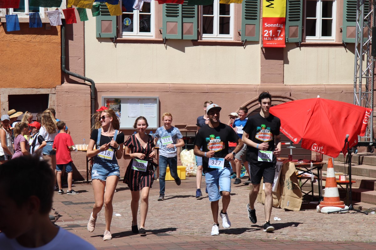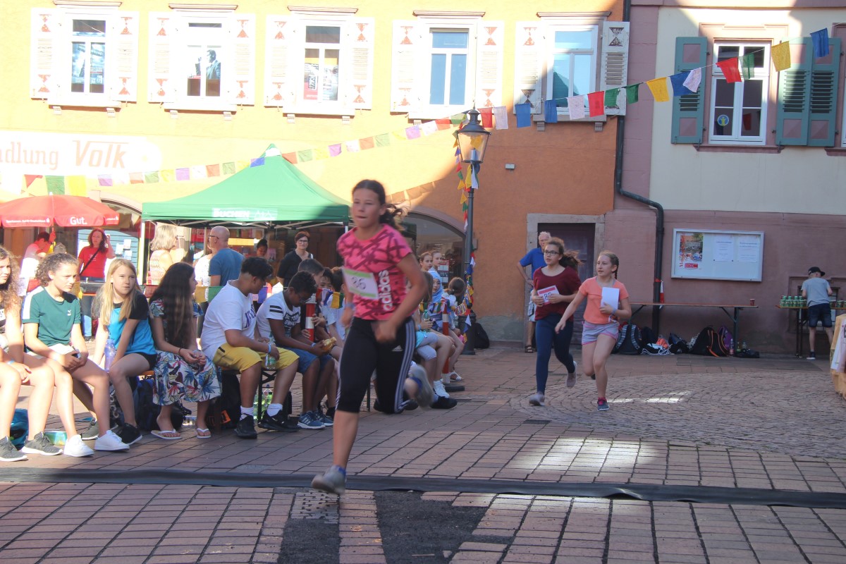 Lehrer Daniel Schäfer erklärte, dass sie natürlich jeden Euro gut gebrauchen können, die eigentliche Sensation sei jedoch, zu sehen, wie sich an diesem Tag vier Generationen gemeinsam für andere Menschen in einem der ärmsten Länder der Welt engagieren. So waren aus einer Familie die Enkel mit ihrem Kindergarten und ihrer Schule, die Mütter mit Kinderwagen und der Großvater mit Rollator mit seiner Tagespflegegruppe gelaufen. Das waren Bilder, die unter die Haut gingen. Das gemeinsame Laufen, egal wie jung oder alt, egal ob fit oder nicht und das Gefühl in einer kleinen Gruppe, die Welt ein Stückchen besser zu machen, beflügelten an diesem Tage viele. So liefen am Vormittag Schüler der ABR, der Hettinger Grundschule und der Wimpina-Grundschule und mischten sich auf der Strecke unter 51 Kinder des Kindergartens "Regenbogen" und die Läufer der Diakonie Buchen und Wertheim, die mit Rollstuhl und sich an den Händen haltend unermüdlich Runden drehten. Später liefen noch Kinder des Kindergartens St. Rochus, Schüler der Zentralgewerbeschule und der Helene-Weber-Schule, die Initiative "Herz statt Hetze", sowie Gruppen von verschiedenen Unternehmen, Vereinen und auch Zuschauer, die sich spontan mitreißen liesen und sich noch schnell gegenseitig sponsorten.
