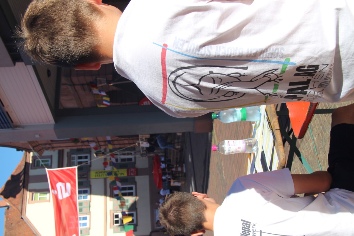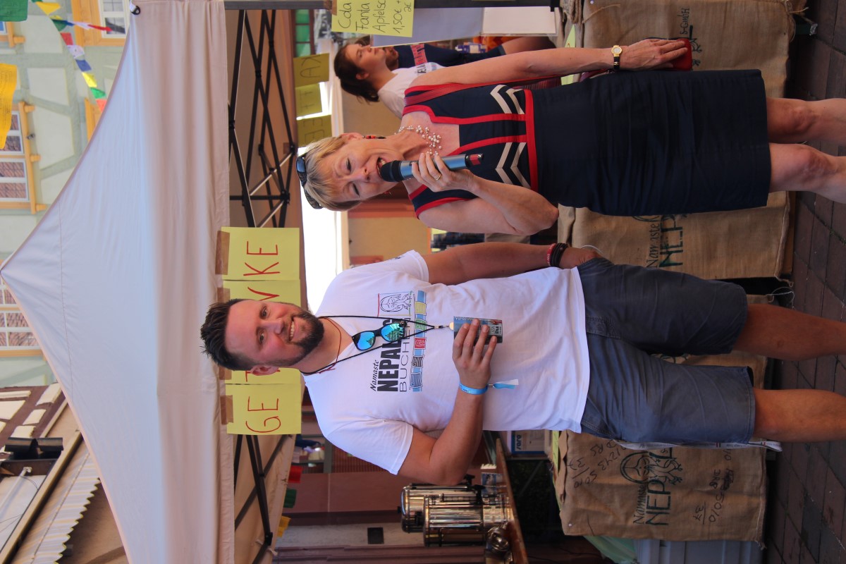 Den Schülern der Namaste Nepal sAG ist auch wichtig, den Gedanken, dass man gemeinsam mehr erreichen kann, weiterzutragen und sie haben aus diesem Grund auch andere sozial engagierte Projekte aus der Umgebung in ihr nepalesisches Dorf auf dem Marktplatz eingeladen. So waren auch das BGB mit ihrer EineWelt AG und die Buchener Lyrikerin Xenia Hügel, die Kinder in Uganda unterstützt mit einem Stand dabei, sowie Läufer des Help Sommermärchen Teams, das die Schüler schon seit einiger Zeit unterstützt und nun plant, gemeinsam mit den Buchener Schülern im nächsten jahr nach Nepal zu fliegen.