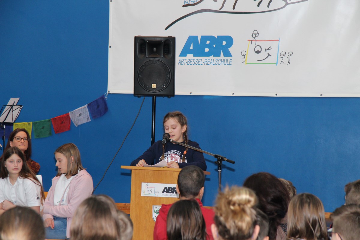 Die besinnlichen Gedanken rund um und die große Vorfreude auf das bevorstehende Weihnachtsfest wurden richtig lebendig, als unsere Band und der gemischte Unter - und Oberstufenchor mit ihrem bunten Liederrepertoire aufglänzten. Und unsere diesjährige, frisch gekürte Schulgewinnerin des Vorlesewettbewerbs Carolin Riewe aus der Klasse 6a zeigte neben ihrem Können auch ihren Mut, als sie vor der ganzen versammelten Schüler- und Lehrerschar die Geschichte vom "Weihnachtsbraten" zu ihrem Besten gab. Nach vielen besinnlichen, aber auch schwunghaften Liedern wie "Winter Wonderland", "Jingle Bells" oder "Mary's Boy Child" feierten die Schüler anschließend noch im kleinen Kreise ihrer Klassengemeinschaft ein bisschen Weihnachten und waren dann, in freudiger Erwartung auf die Ferien, entlassen.