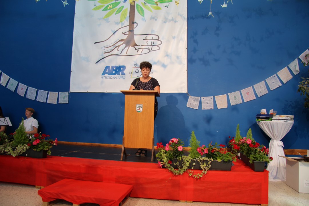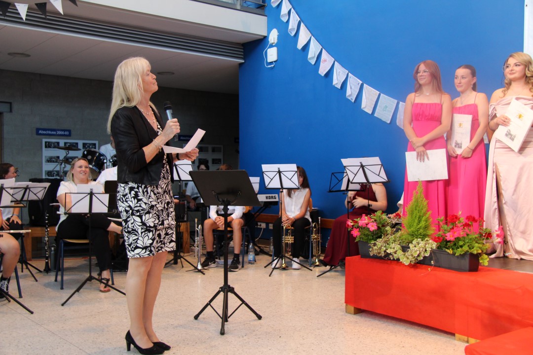 Anschließend richtete Frau Mühlhauser als Vertreterin des Elternbeirats ihre Glückwünsche an die Abschlussklassen. Sie betonte dabei, dass die Schüler und Schülerinnen die Grundlagen für ihren weiteren Lebensweg erhalten haben und nun ihre Stärken und Schwächen nutzen müssen, um erfolgreich ihre Zukunft zu meistern.