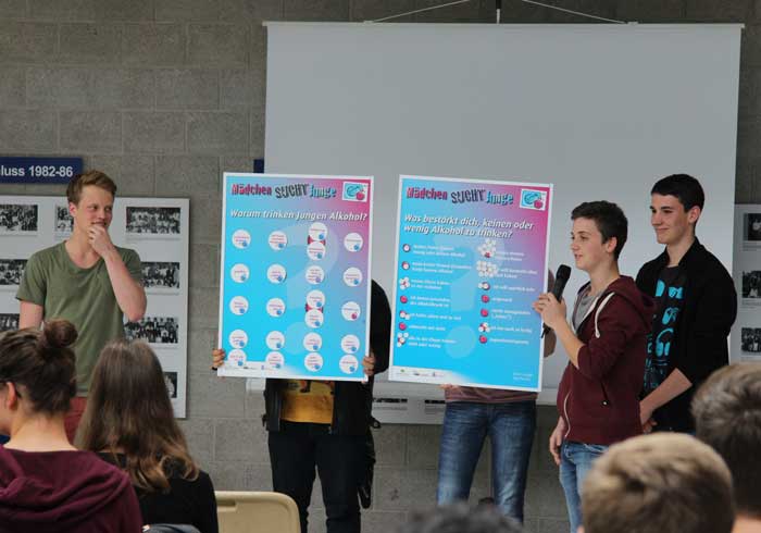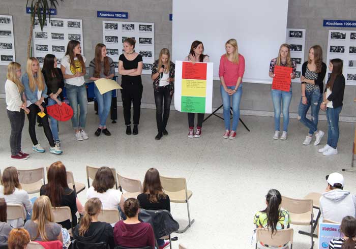 Hinter interessant formulierten Themen wie "Junge-Sucht-Mädchen", "Inbetween" oder "Die schöne neue Welt des Essens" verbargen sich lebensnahe Themen für die Schülerinnen und Schüler, wie Alkoholkonsum, Sexualität oder Mobbing, über die nicht nur informiert und auf Gefahren hingewiesen, sondern über die offen gesprochen wurde. Eher praktisch orientiert war der Workshop Bostaff, in dem eine kleine Vorführung mit dem "Bo", also dem Stab, dieser noch relativ unbekannten Trendsportart einstudiert und am Ende vorgeführt wurde. Zusammen mit den anderen kreativ gestalteten Vorträgen, war die Präsentationsrunde ein gelungener Abschluss des Vormittags, der den Absolventen Handlungsmöglichkeiten aufgezeigt und durch die praktische Orientierung Handlungskompetenz vermittelt hat. Ein besonderer Dank gilt dabei gibt den Referenten und Referentinnen Frau Schmitt Frau Ludäscher-Nikolaus, Frau Reschke, Herr Üihlein, Frau Ehrle, Herr Dr. Schulz, Frau Ehret, sowie den beteiligten Lehrerinnen und Lehrern Frau Hahn, Frau Petschenka, Herr Schäfer und Herr Trunk, ohne deren Engagement die Veranstaltung nicht in diesem Rahmen hätte stattfinden können.