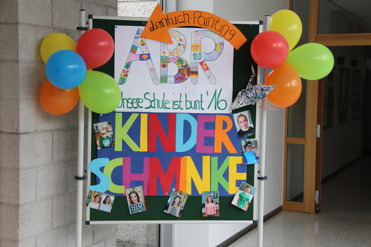 Die Vielfalt der Angebote erstreckte sich von einer Cocktailbar, dem Kinderschminken, den Ausstellungen verschiedener Fächer über landestypische Köstlichkeiten und zahlreiche Mitmachaktivitäten, welche von den einzelnen Klassen und Arbeitsgemeinschaften vorbereitet und durchgeführt wurden. So gab es eine italienische Eisdiele, eine französische Crêperie, eine Spielestraße, Bogenschießen, Führungen durch die naturwissenschaftlichen Fachräume und das Schulhaus, Batiken in TW-Raum, kunterbunte Strafarbeiten und viele verschiedene Quiz und Informationen zu Projekten an der ABR. Auch der Förderverein „impulse e. v.“ wurde durch Vorsitzende und Mitglieder vertreten. Der Elternbeirat sorgte mit Gegrillten, heißen und kalten Getränken und Kuchen für das leibliche Wohl.