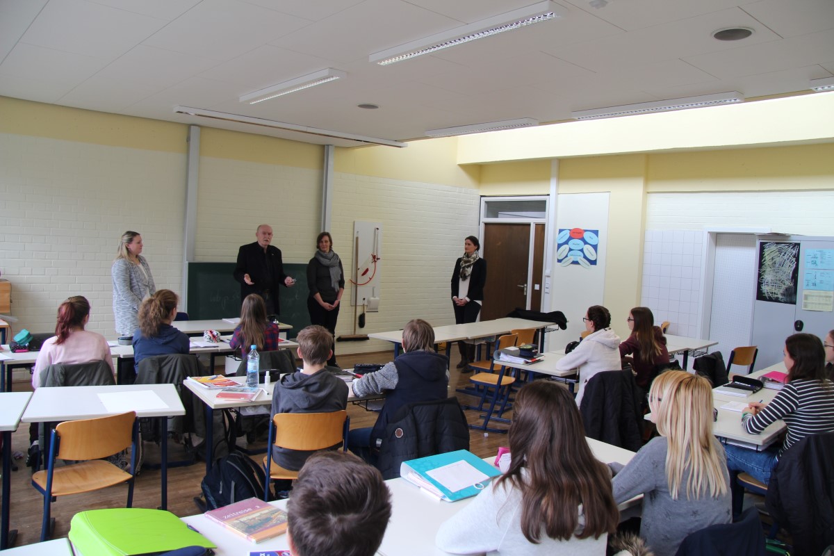 Die Arbeit des Ambulanten Kinderhospizdienstes Neckar-Odenwald-Kreis beeindruckte die Klasse besonders, sodass der Wunsch entstand, diesen Verein zu unterstützen und damit Kindern zu helfen, die es im Leben sehr schwer haben. Am 31. Januar 2017 besuchten der 1. Vorsitzende des Ambulanten Kinderhospizdienstes Jürgen Kriege und die Koordinatorin Christine Kretschmer die Klasse 8b, stellten ihre Arbeit vor und standen Rede und Artwort für die Fragen der Schüler. Darüber hinaus dankten sie den Jugendlichen für ihr Engagement.