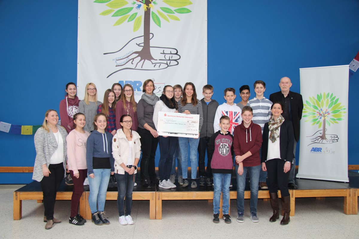 31.01.2017 | Die Klasse 8b der Abt-Bessel-Realschule überreichte einen Spendenscheck über 500 Euro an die Verantwortlichen des Ambulanten Kinderhospizdienstes Neckar-Odenwald-Kreis.