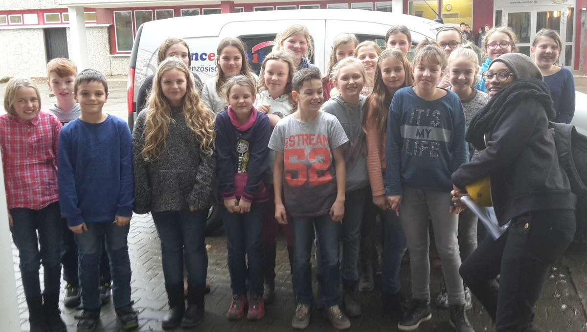 12.01.2015 | Das „Francemobil“, das die französische Kultur und Sprache in die Schule bringen will, machte mit der französischen Lektorin Lauréta Agossah Station an der Abt-Bessel-Realschule.
